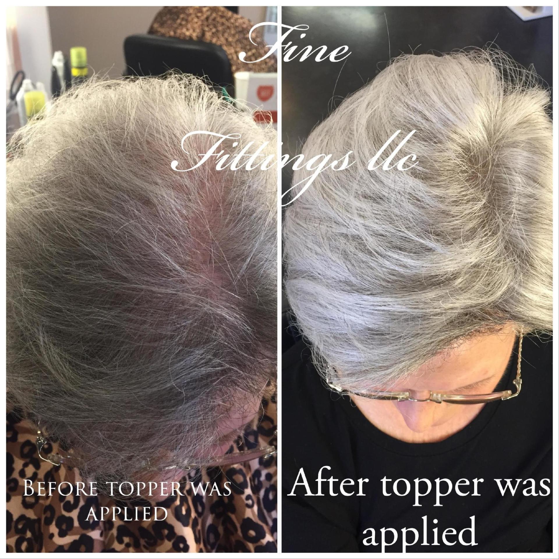 Toppers are so versatile and can be used for fun or out of necessity. Are you trying to grow your hair out and want some added length now, are you ready to have some highlights but don’t want to color your actual hair, need your ponytail to look fuller and longer… than a topper is your solution. On the other hand , at some point we all experience times of hair loss, whether it be a thru a pregnancy, a stressful season of life, aging, medications, or medical diagnosis’ and need something to fill in where we are thinning. Our toppers offer a variety of coverage areas and you can add smaller or larger amounts of hair along with different lengths and colors. See gallery for more photos: